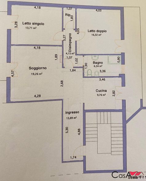 Gli ambienti interni sono stati rivisti per donare agli spazi una visione più moderna con ingresso su ampio disimpegno con zona giorno open space perfettamente separata dalla zona notte; oltre all ampio bagno con box doccia è presente anche un comodo rispositglio.