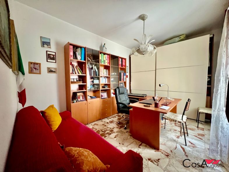 L' immobile di 140 metri quadrati catastali presenta ingresso su ampio salotto con doppio punto luce e una perfetta separazione della zona notte con due camere da letto, bagno e rispotiglio dalla zona giorno con ampia cucina e bagno.